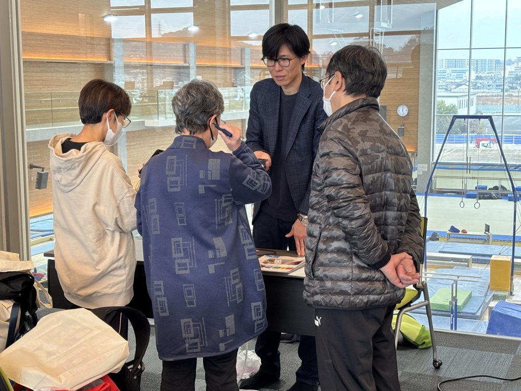 当日は近隣住民やイベントの運営サポート役を本学学生と一緒に担って頂いた神奈川県立湘南⾼校体操部の皆さんなど約50名が参加し、7団体11計測項目による健康測定を体験しました。